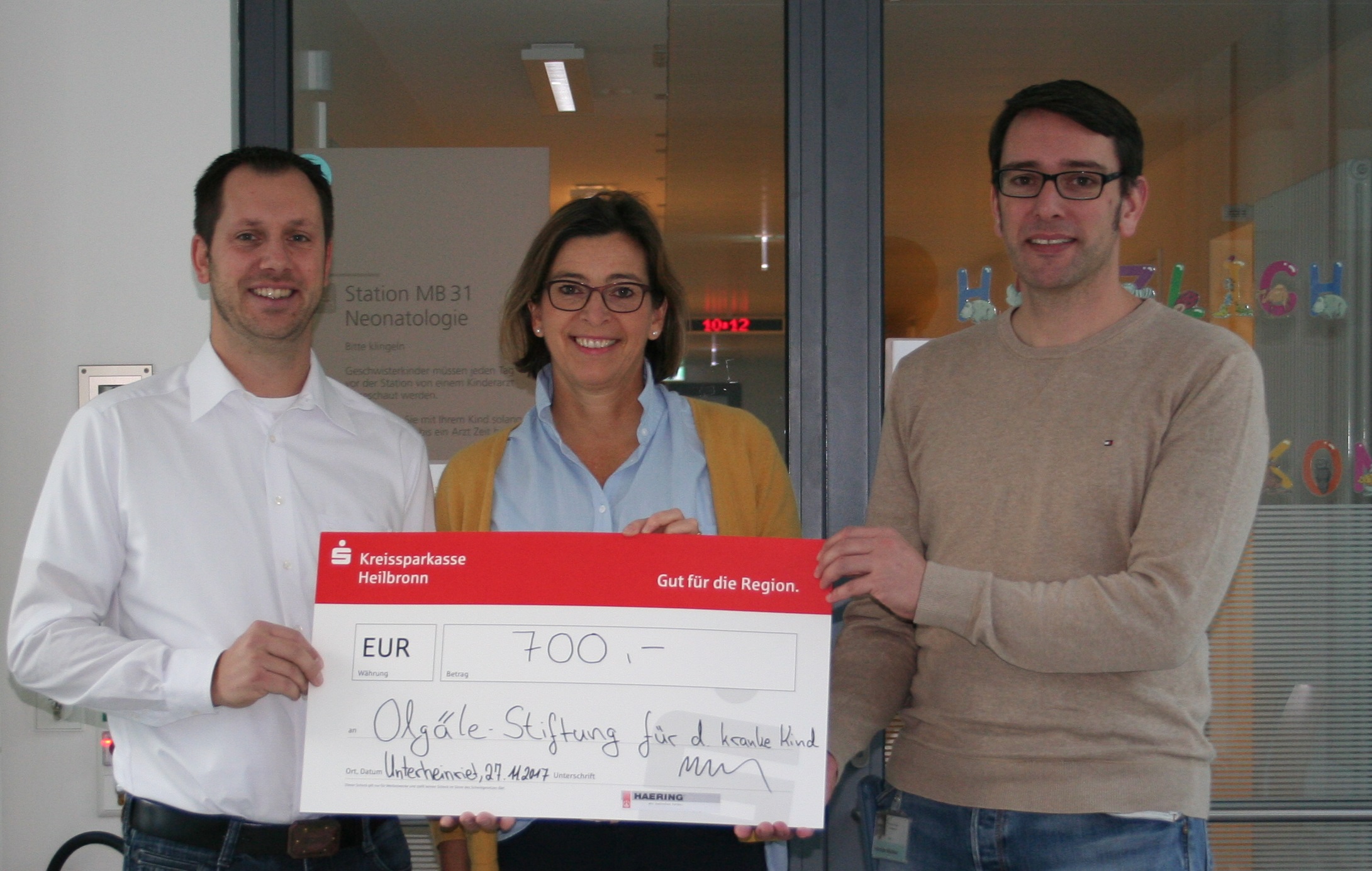 Die Firma Haering hat zum Teil auf Geschenke für ihre Geschäftspartner verzichtet und somit die Olgäle-Stiftung mit einer Spende unterstützt.