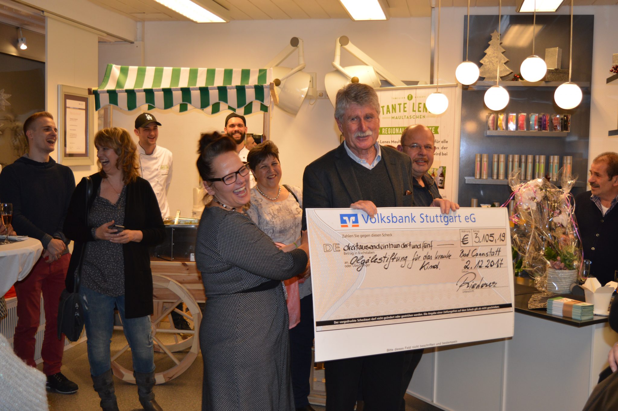 Frau Helene Riederer feierte am 2. Dezember 2017 zusammen mit ihren Kunden das 25-jährige Jubiläum ihres Friseursalons Helene in Bad Cannstatt. Dabei kam eine Spendensumme von 3.105,19 Euro zusammen, die der Olgäle- Stiftung zugute kam.