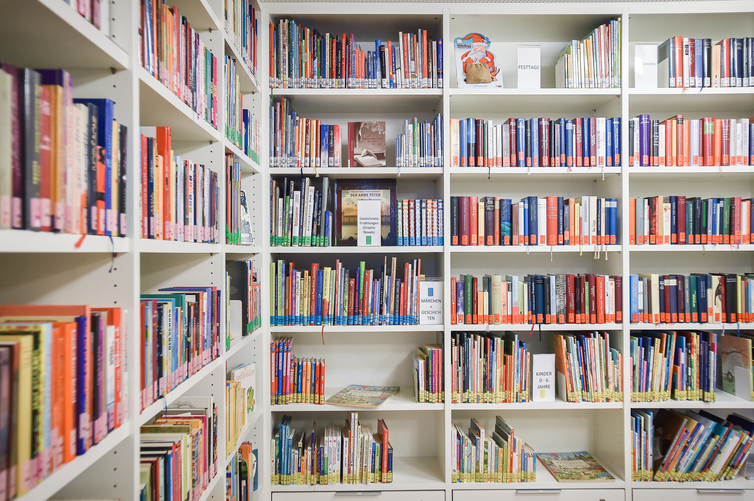 In der Bücherei im Erdgeschoss warten über 2.500 Bücher, Hörbücher, Spiele und Malsachen auf große und kleine Leseratten. Das Angebot ist kostenlos und wird komplett ehrenamtlich betreut – meist vormittags und nachmittags von Montag bis Samstag. Falls Sie selber aktiv mithelfen möchten, finden Sie hier mehr Informationen.