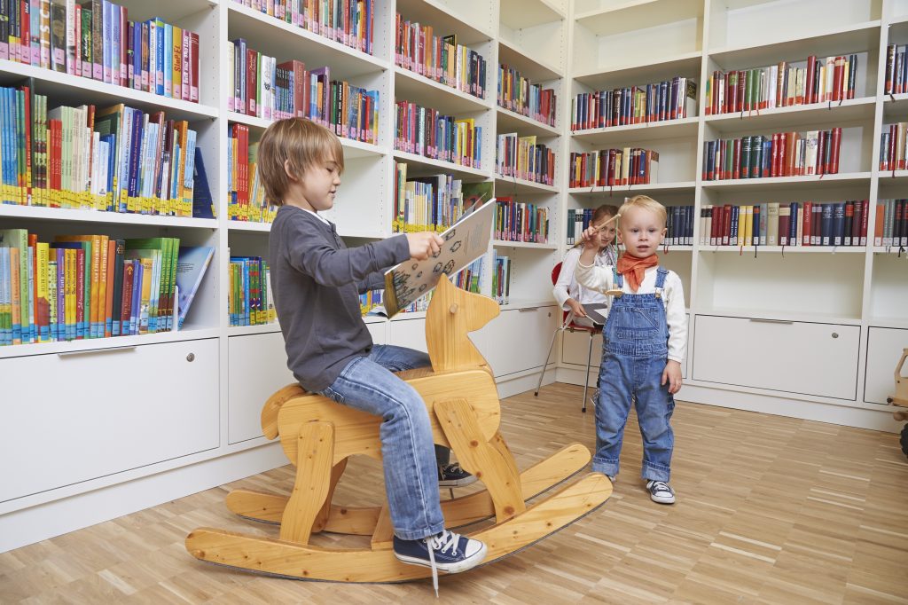 In der Bücherei im Erdgeschoss warten über 2.500 Bücher, Hörbücher, Spiele und Malsachen auf große und kleine Leseratten. Das Angebot ist kostenlos und wird komplett ehrenamtlich betreut – meist vormittags und nachmittags von Montag bis Samstag.