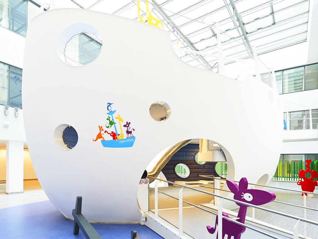 Beim Neubau des Olgahospitals startete die Stiftung eine große Spendenaktion und investierte über 2,5 Millionen Euro in die Innengestaltung. So entstanden die „Arche der Hoffnung“ in der Eingangshalle, farbenfrohe Wartebereiche, fröhliche Tierfiguren als Leitsystem und ein würdevoller Abschiedsraum – all das, was die Klinik heute zu einem Ort mit Herz macht.