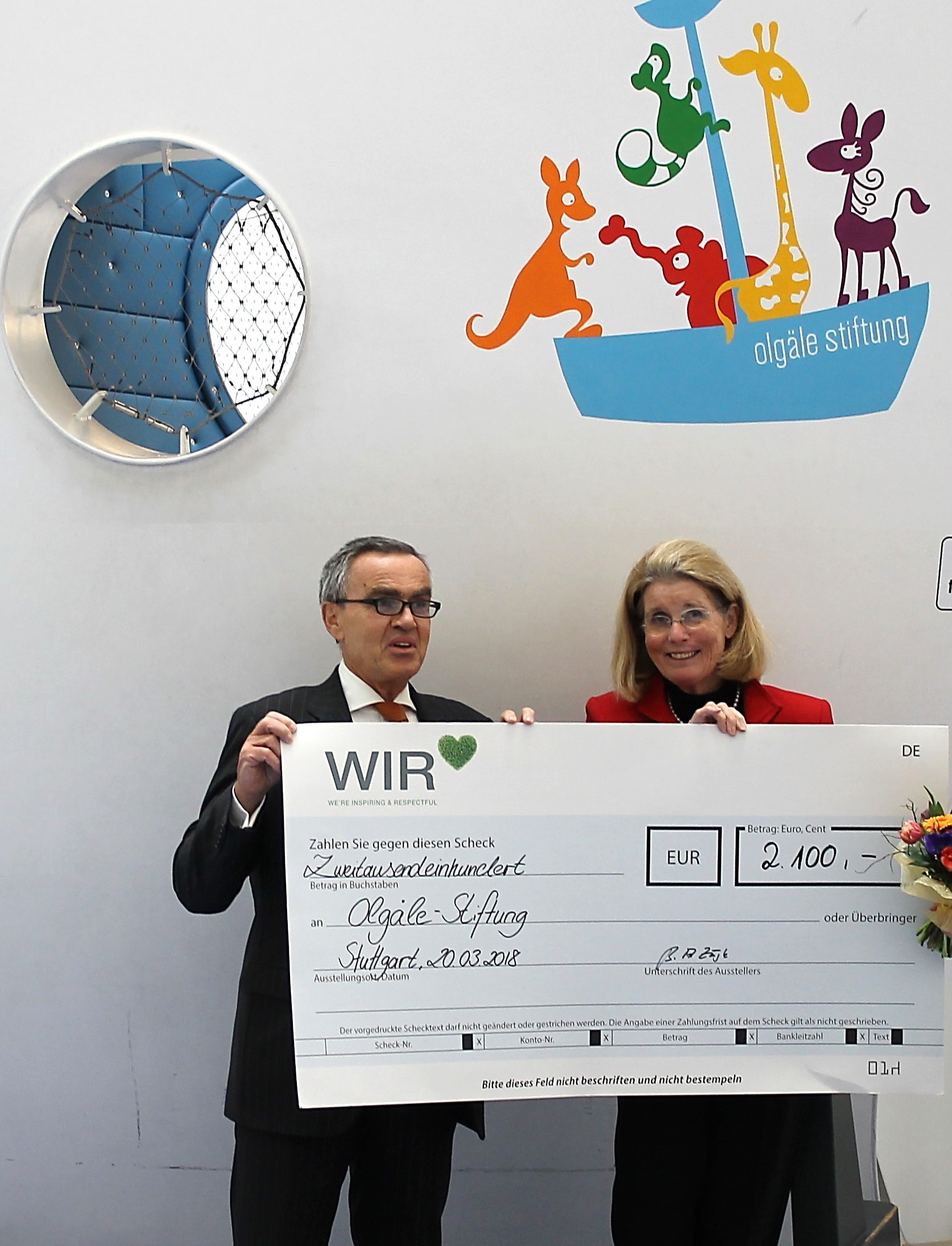 Herr Zängle, Hoteldirektor im Steigenberger Graf Zeppelin war es eine Herzensangelegenheit, persönlich einen Spendenscheck in Höhe von 2.100 Euro an Frau Dr. Schuster zu übergeben.